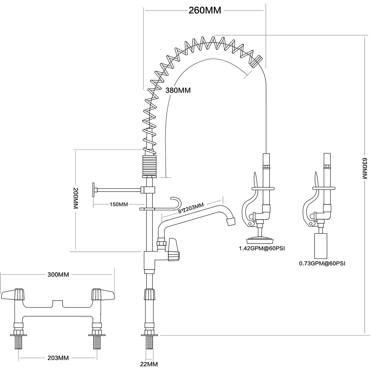 8&Quot; Desk Mount Mixing Faucet With 8&Quot; Riser &Amp; 18&Quot; Flexible &Amp; 8&Quot; Swing Nozzle Hose Chrome Plated Brass | Eq7805 A08