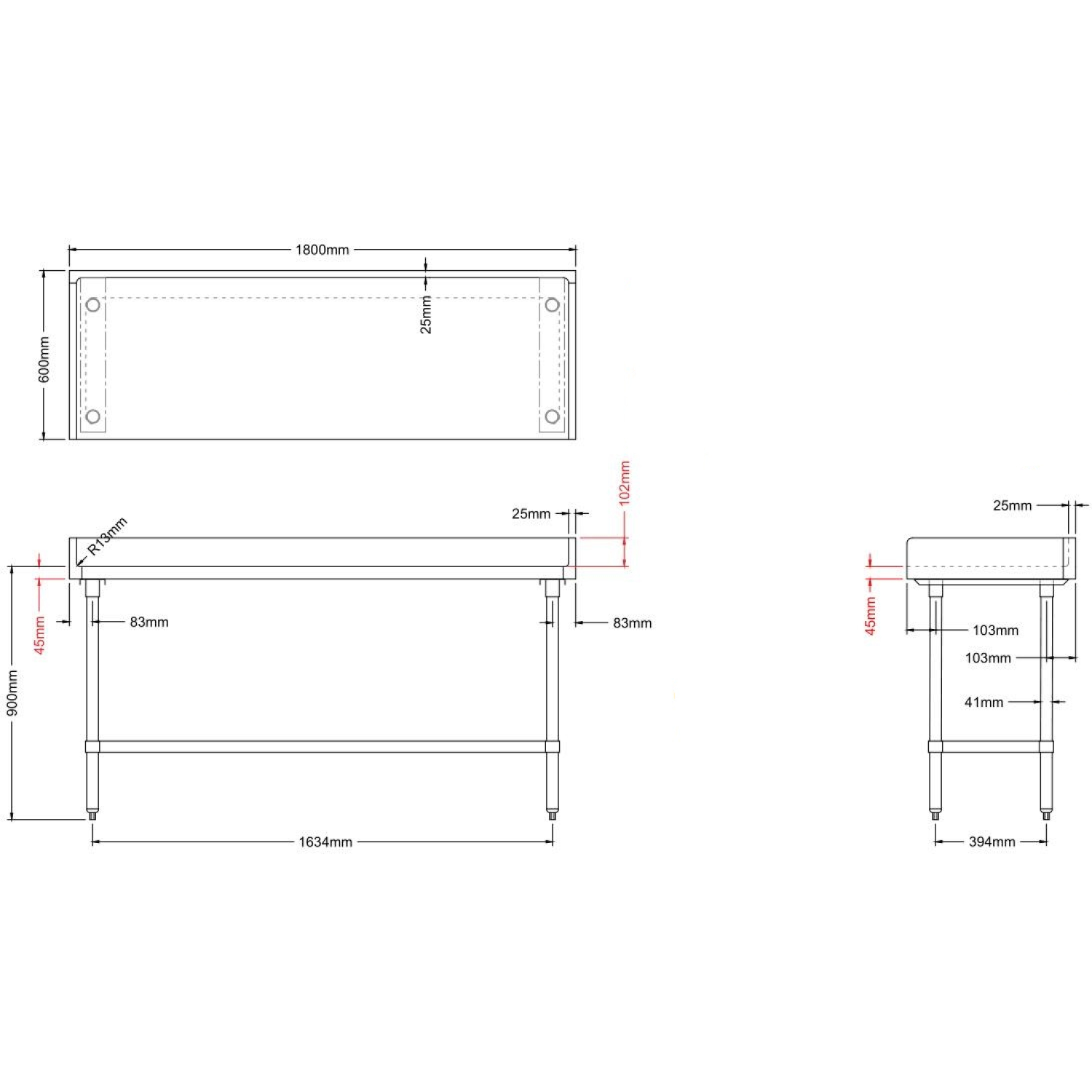 Bakery Work Table Wood Top 1800x600x900mm | Rwtg600 X1800