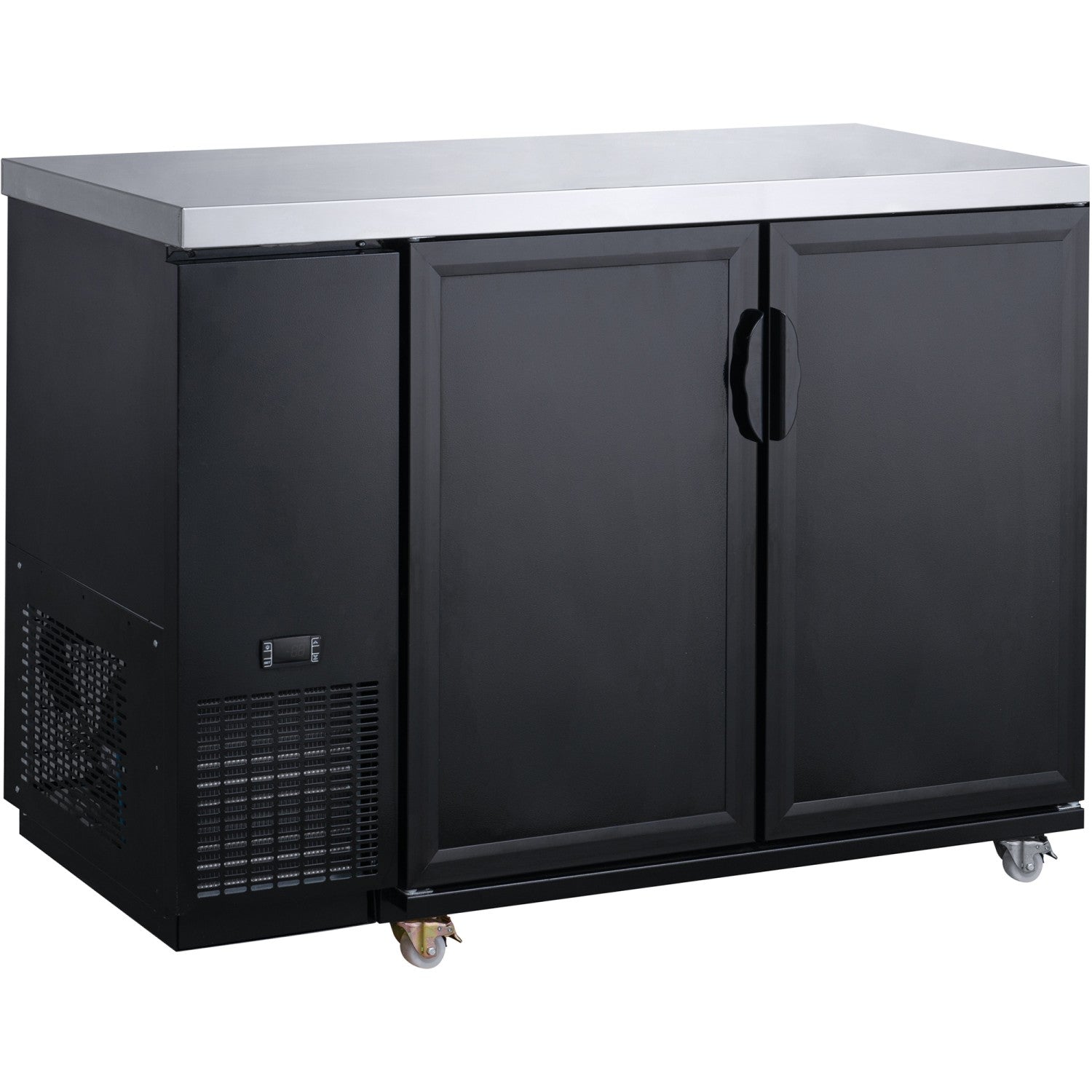Black Counter Height Narrow Solid Door Back Bar Refrigerator With Led Lighting And Stainless Steel Top 462 Litres Black | Dbb60 M2