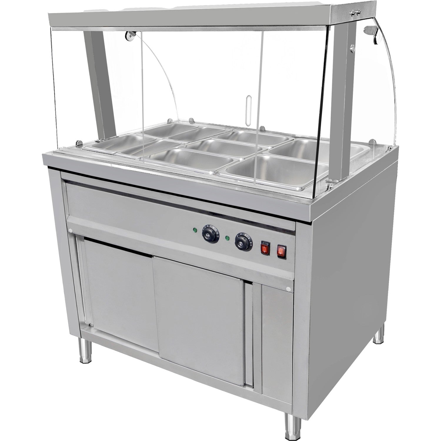 Commercial Bain Marie Hot Food Display With Glass Cover Acrylic Sliding Door And Top Light 1165x690x1400mmmm | Vmgn3 Agh
