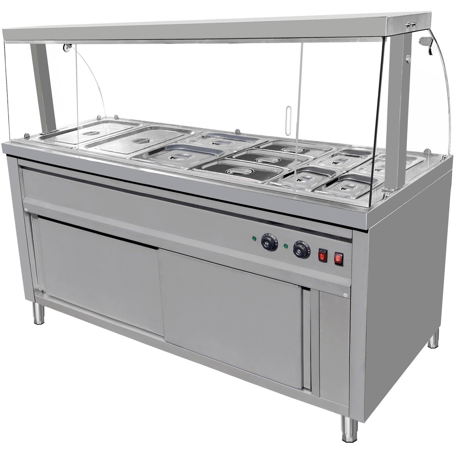 Commercial Bain Marie Hot Food Display With Glass Cover Acrylic Sliding Door And Top Light 1800x690x1400mmmm | Vmgn5 Agh