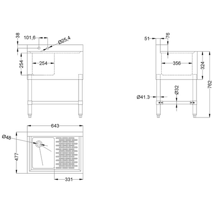 Commercial Bar Sink 1 Bowl Left 643x477x838mm | Bar1 B24 R