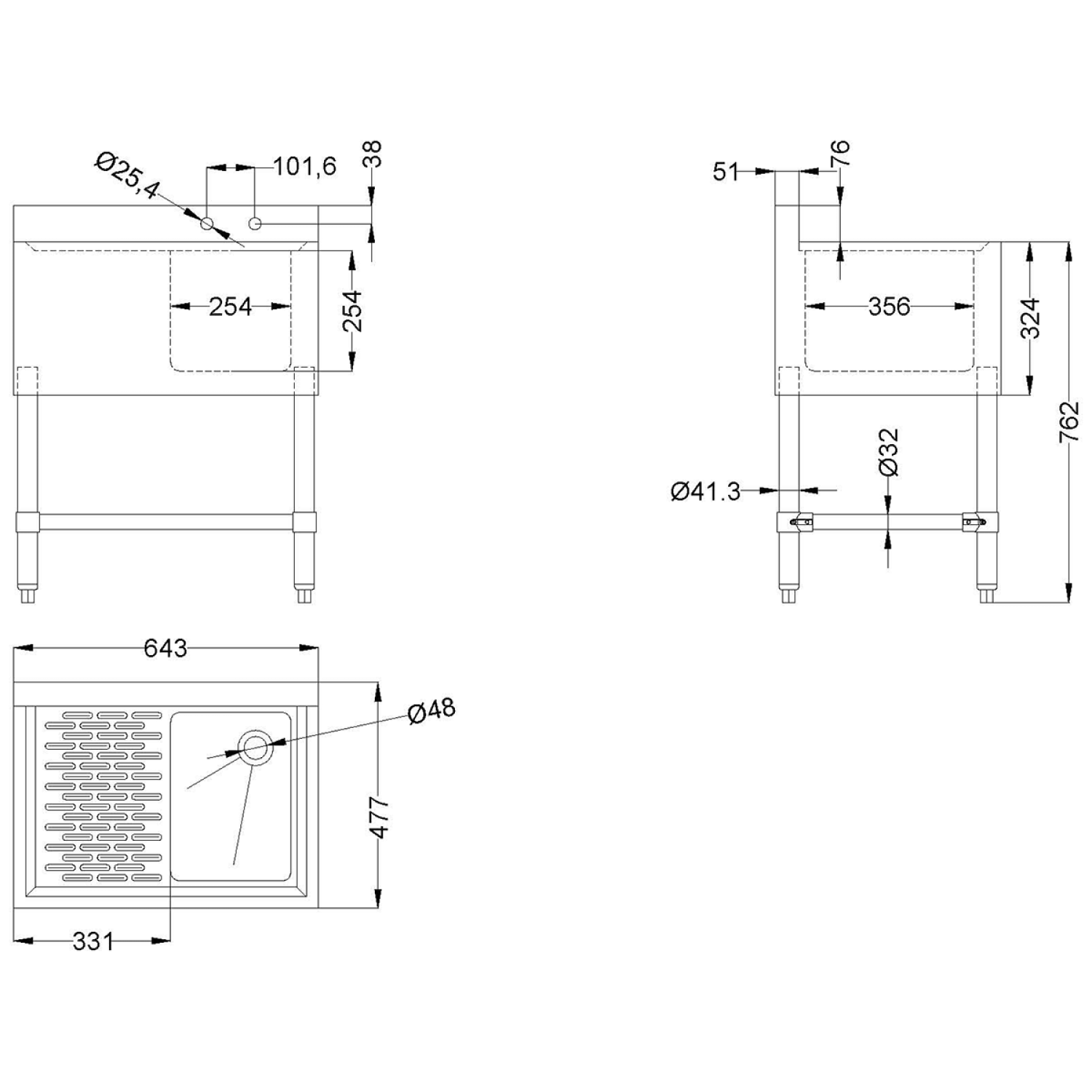 Commercial Bar Sink 1 Bowl Right 643x477x838mm | Bar1 B24 L