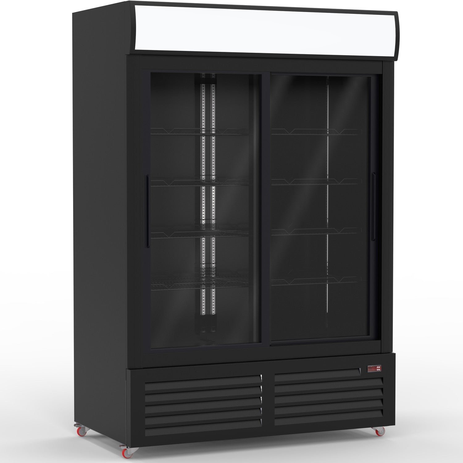 Commercial Bottle Cooler Upright 1400 Litres Double Sliding Glass Door With Led Canopy In Black | Kxg1330 S