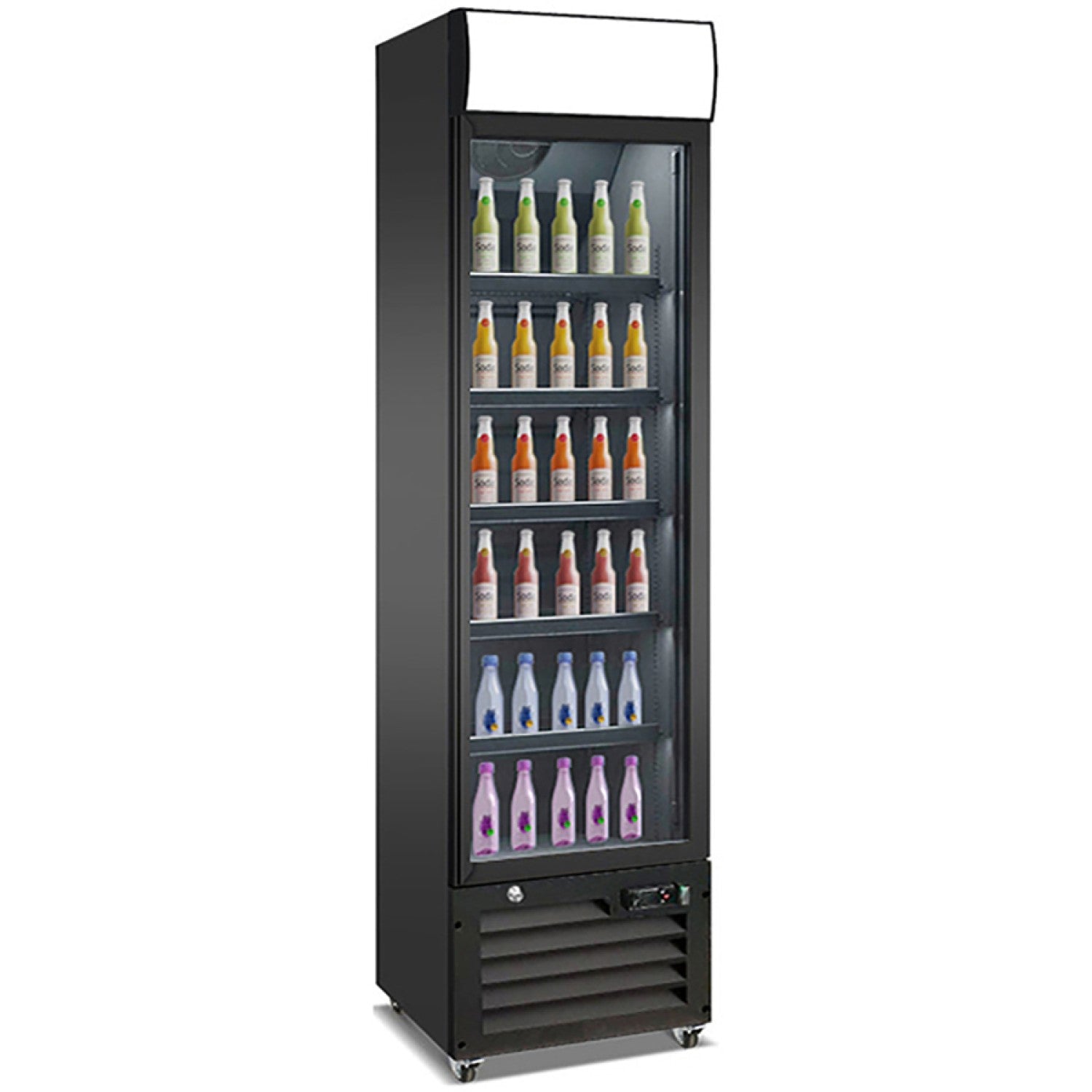 Commercial Bottle Cooler Upright 220 Litres Single Glass Door With Led Canopy In Black | Kxg220 H