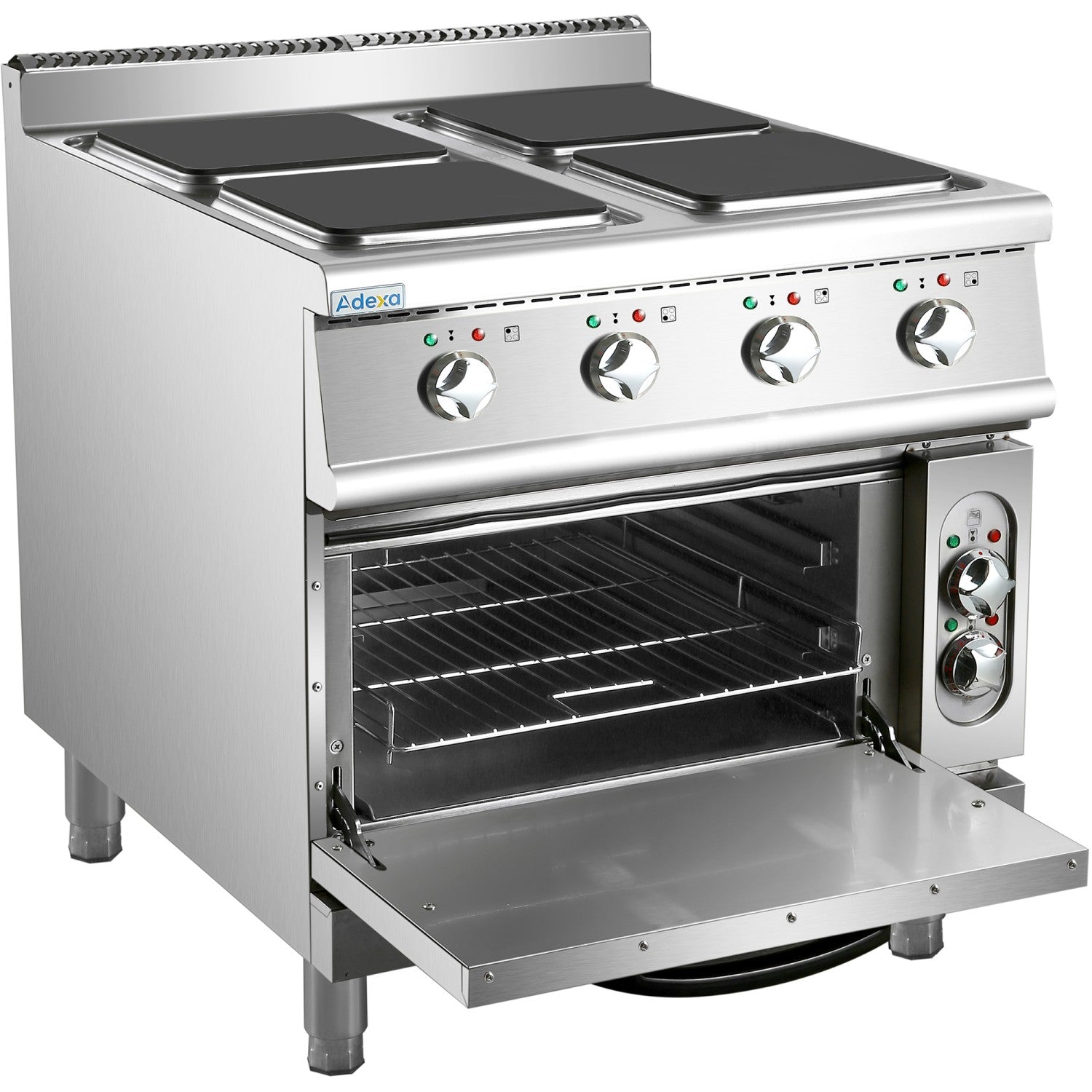 Commercial Electric Cooker 4 Square Burners With Electric Oven 16k W+4.8k W 900mm Depth | Hsq912 B