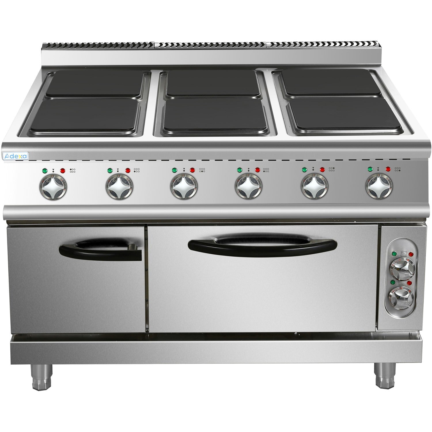 Commercial Electric Cooker 6 Square Burners With Electric Oven 24k W+4.8k W 900mm Depth | Hsq962 B