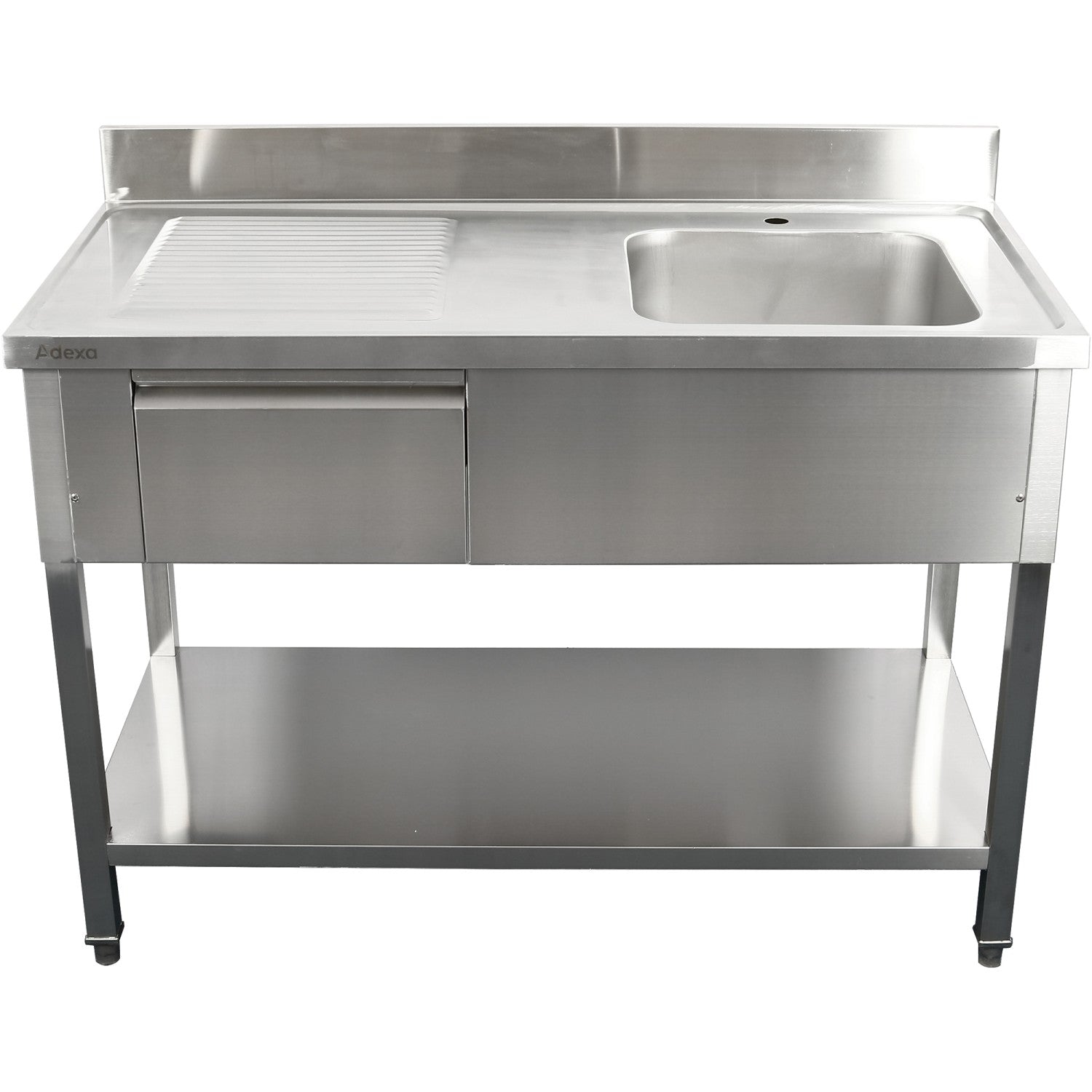 Commercial Sink Stainless Steel 1500x700x950mm 1 Bowl To The Right 1 Drawer Splashback | Dsa150701 Dr