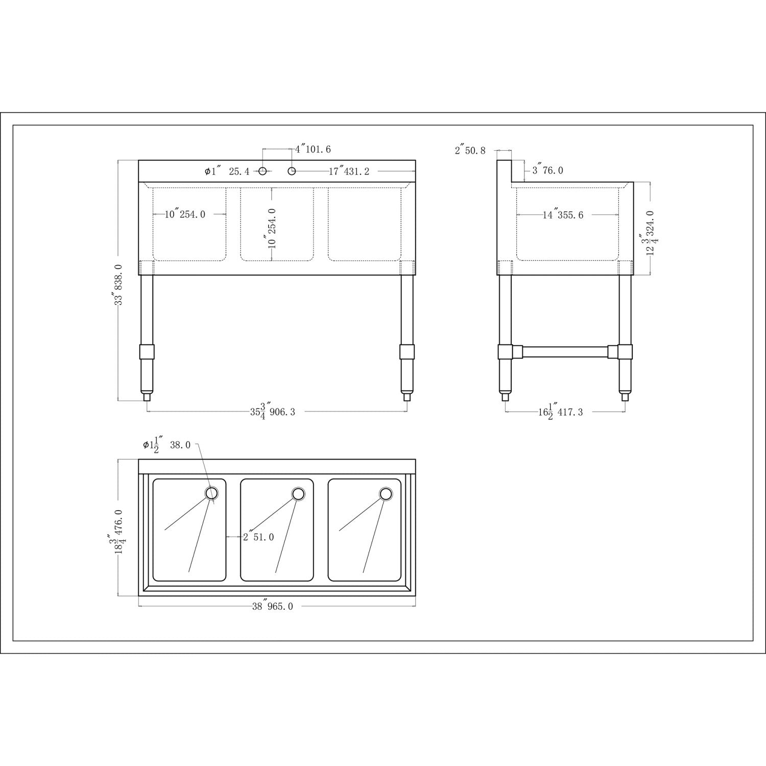 Commercial Sink Stainless Steel 3 Bowl | Bs3 T38