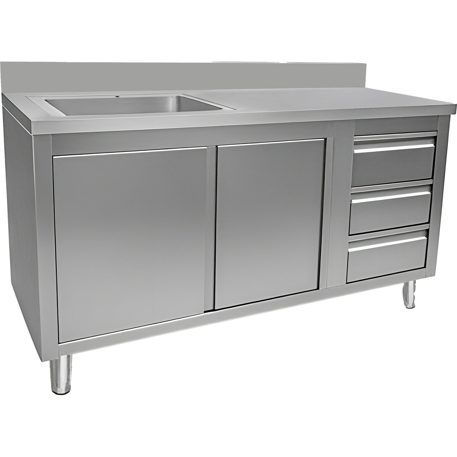 Commercial Sink With Cupboard And 3 Drawers Stainless Steel 1 Bowl Left Splashback 1500x600x950mm | Vsc156 Lbs3 Rd