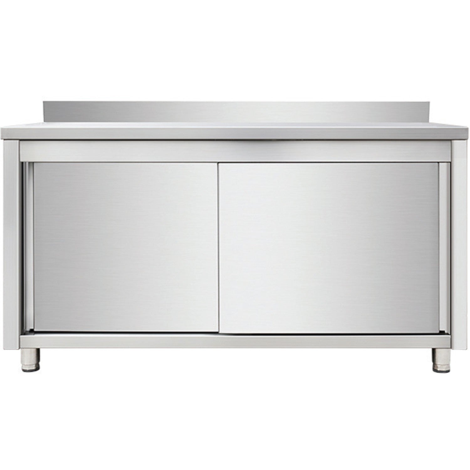 Commercial Worktop Floor Cupboard Sliding Doors Stainless Steel Width 2000mm Depth 700mm Upstand | Thasr207 A