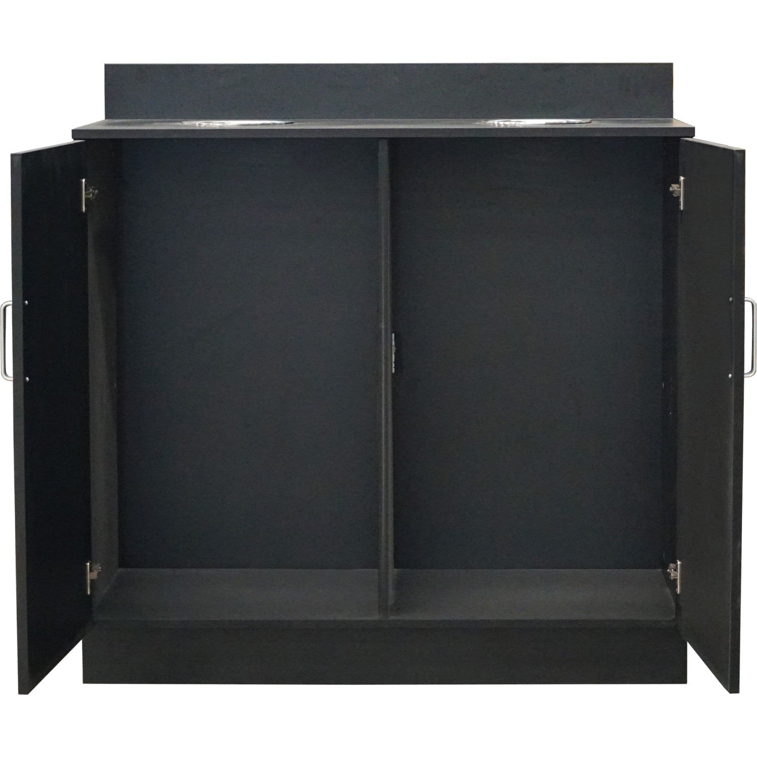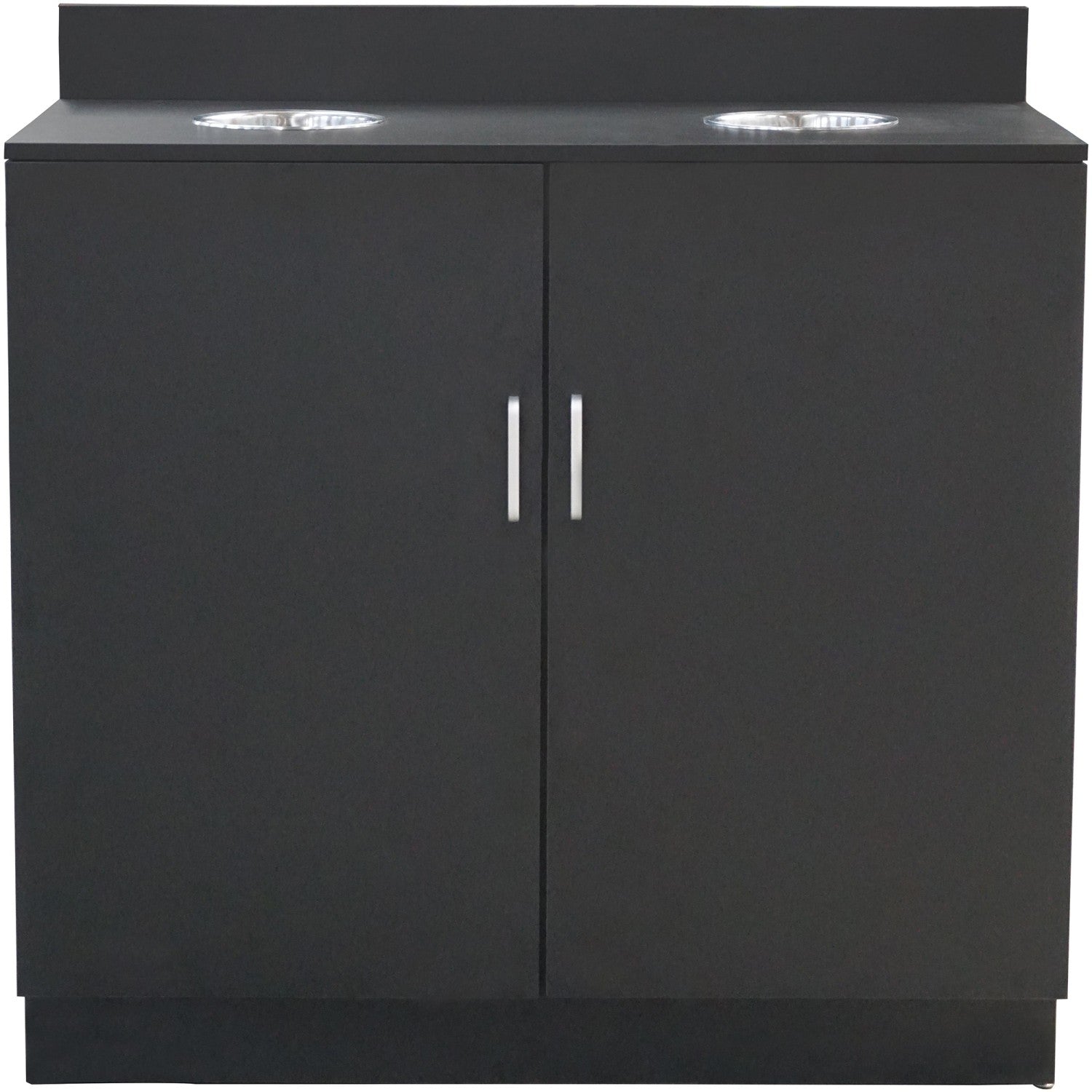 Double Waste Bin Enclosure Cabinet With Drop Hole 1138x560x1160mm Black | Gs30200