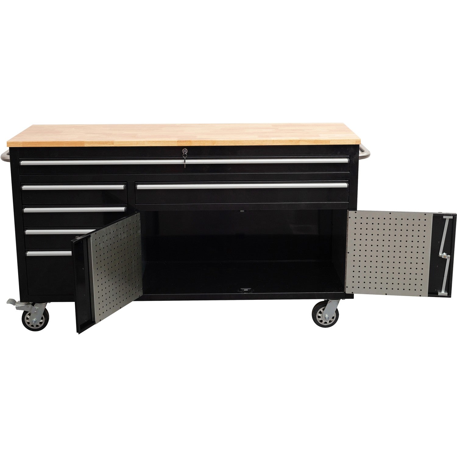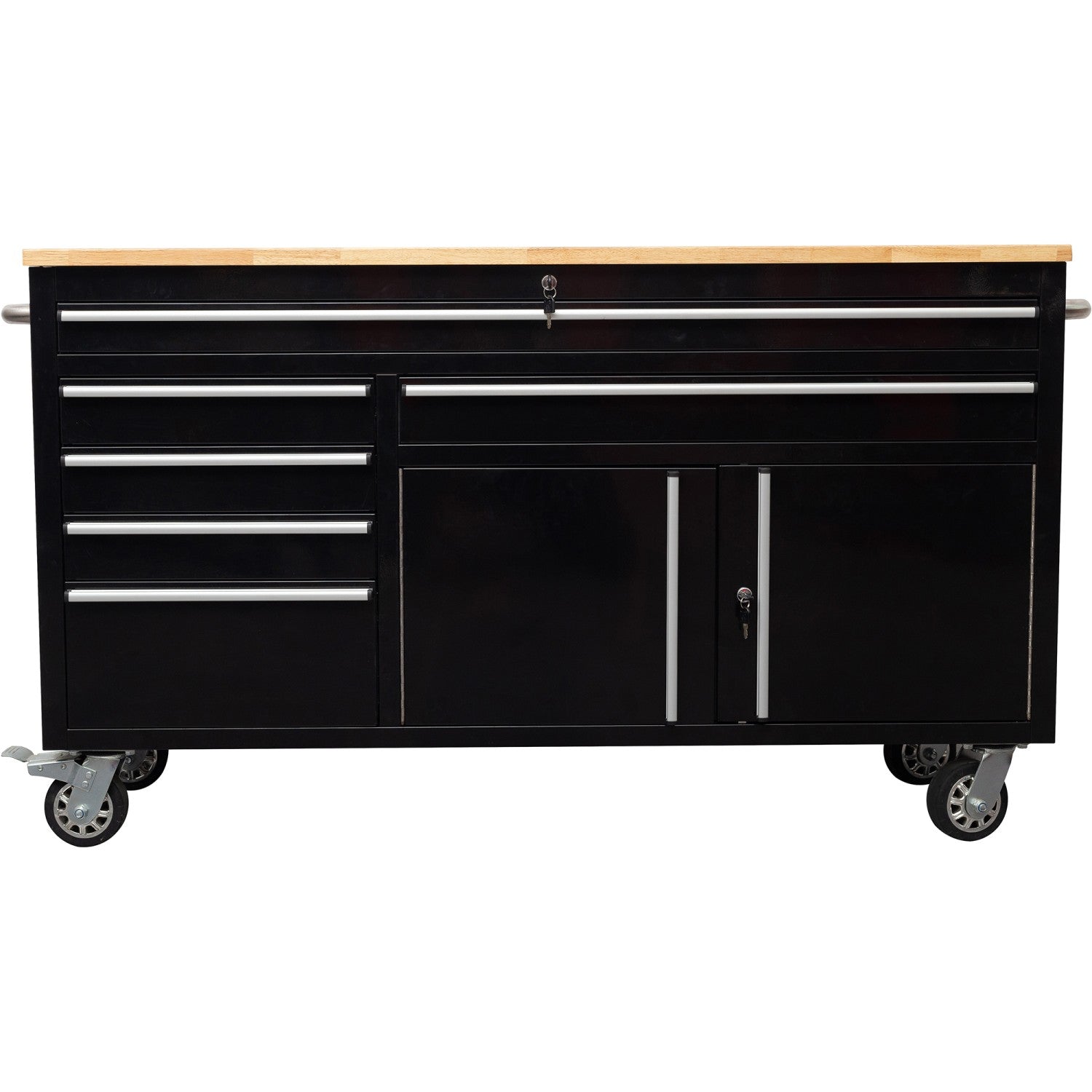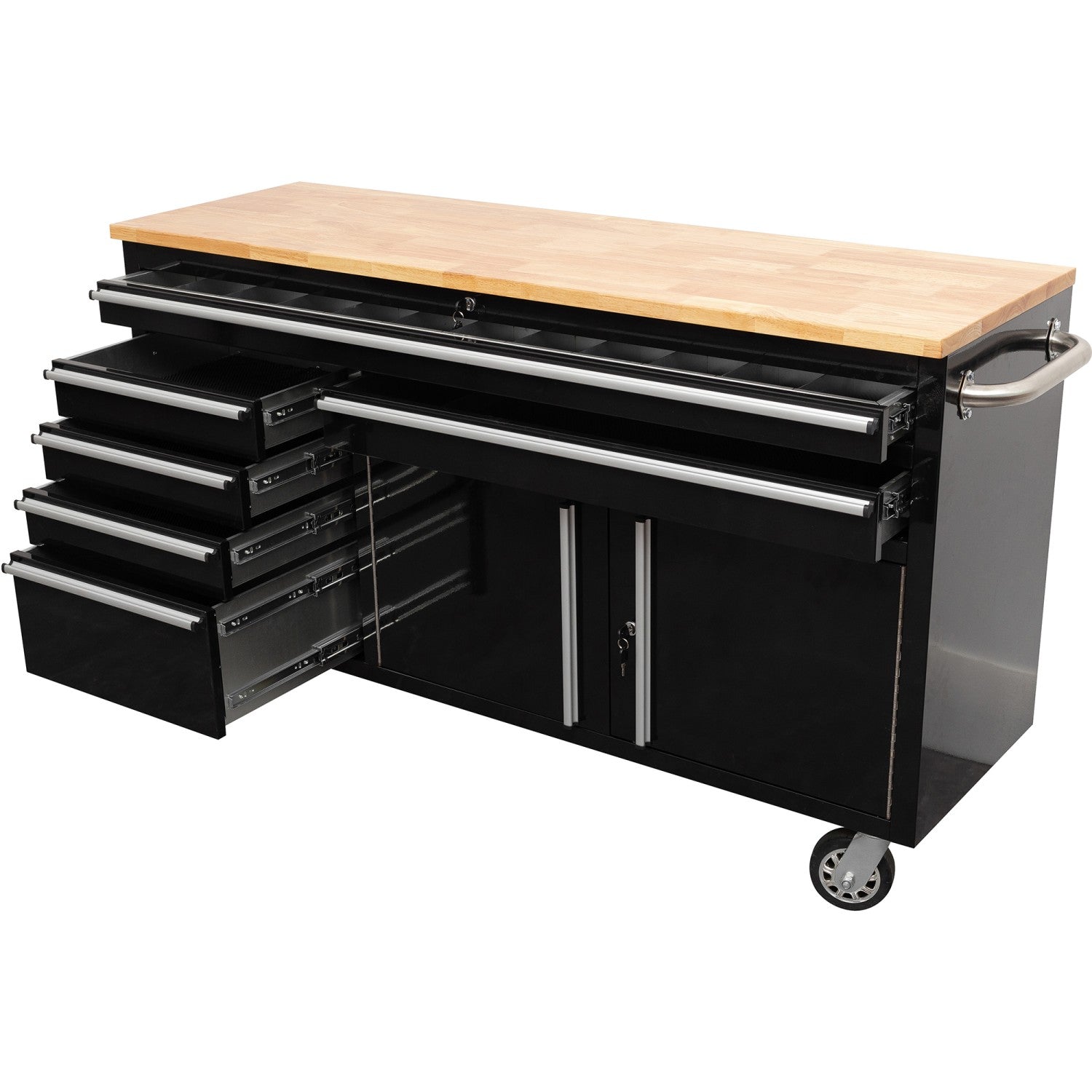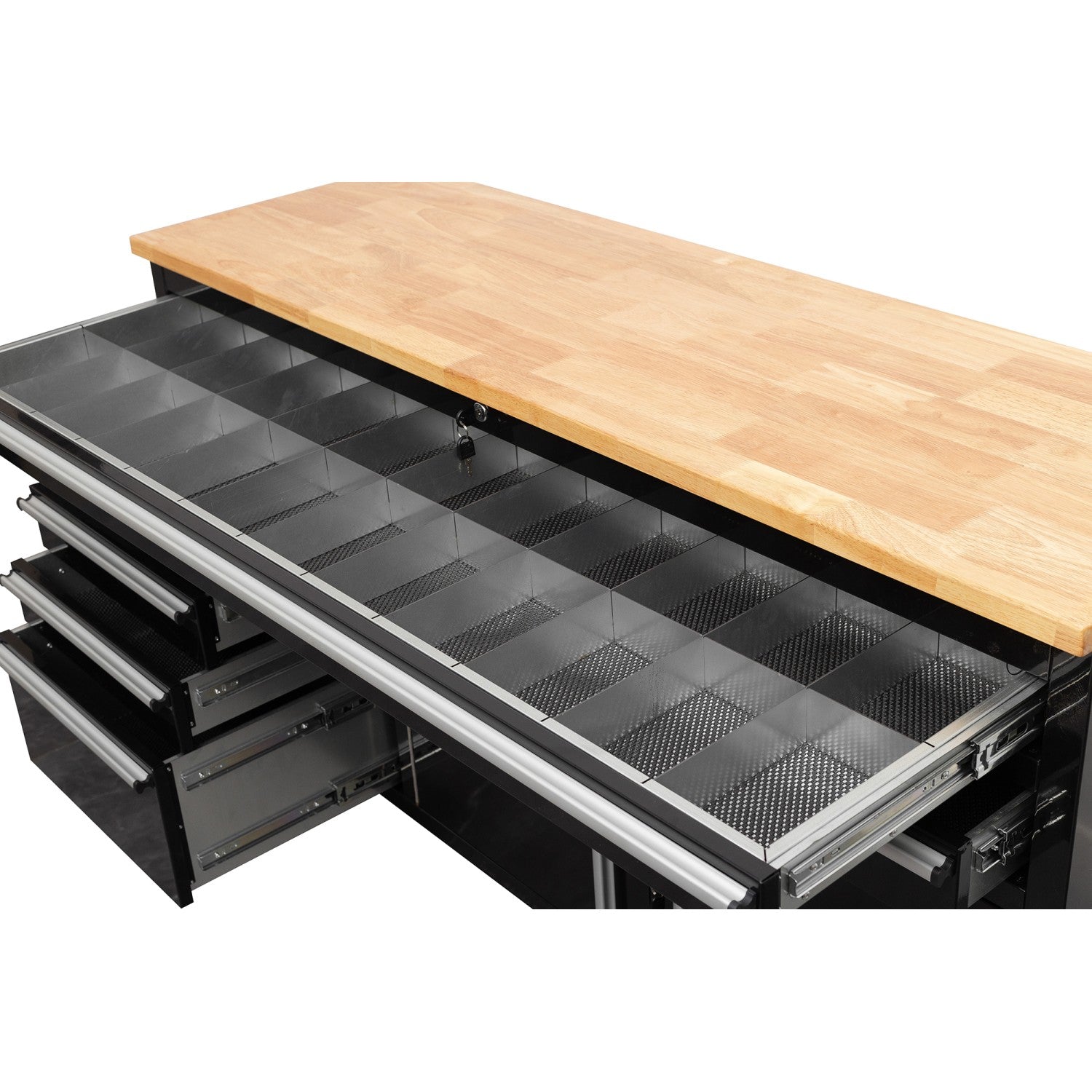 Heavy Duty Steel Rolling Tool Chest With Wooden Worktop 6 Drawers 1 Double Door Side Cabinet 1674x489x907mm Black | 602038 Ablack