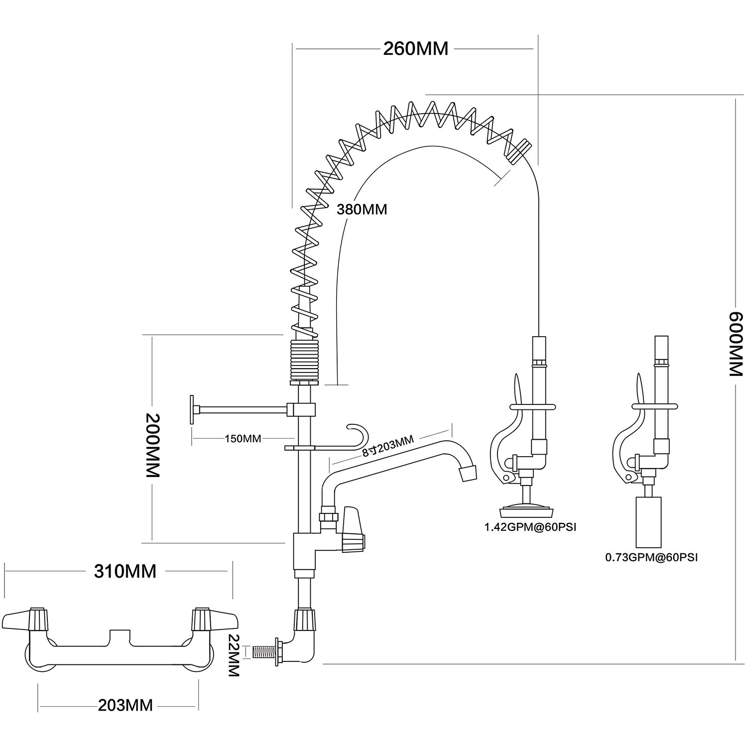 Pre Rinse Spray Unit With Swing Faucet Wall Mount Double Inlet Height 600mm Stainless Steel | Eq7802 A08