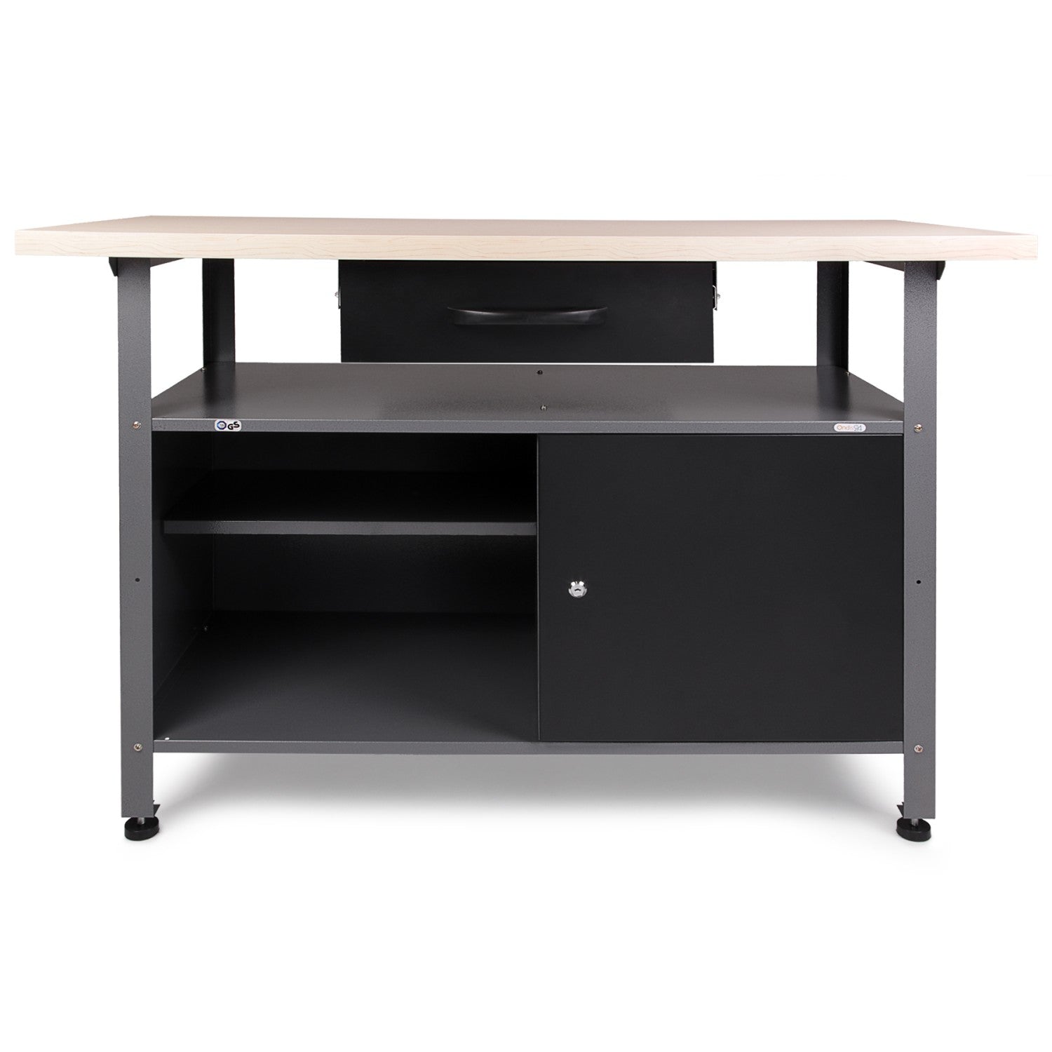 Professional Grey And Black Workshop 2 Layer Workbench With 2 Lockers And 30mm Wooden Desktop 1200x600x850mm | Tc006 B