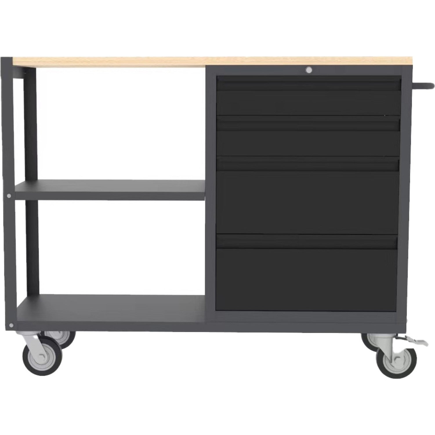 Professional Mobile Grey And Black Tool Cabinet With 4 Drawers And 2 Shelves Wooden Worktop 1480x500x1000mm | Tc097