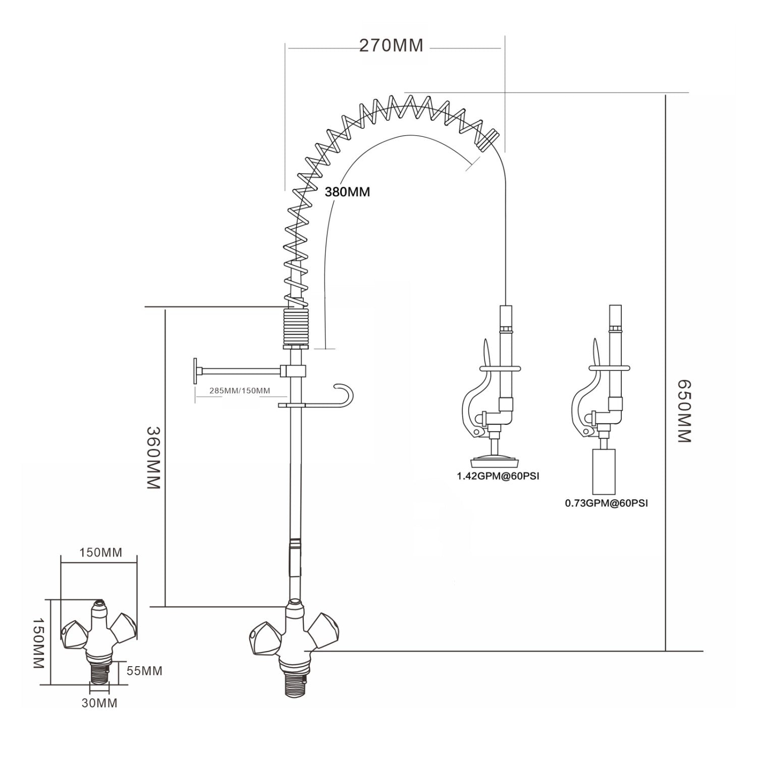 Single Hole Deck Mount Dual Temperature High Pressure Pre Rinse Faucet Chrome Plated Brass | 6802 A